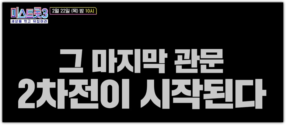 물러설 곳 없는 경쟁, 뜨거운 감동, 2월 22일 (목) 밤 10시, 미스터트롯 3 함께하시죠!